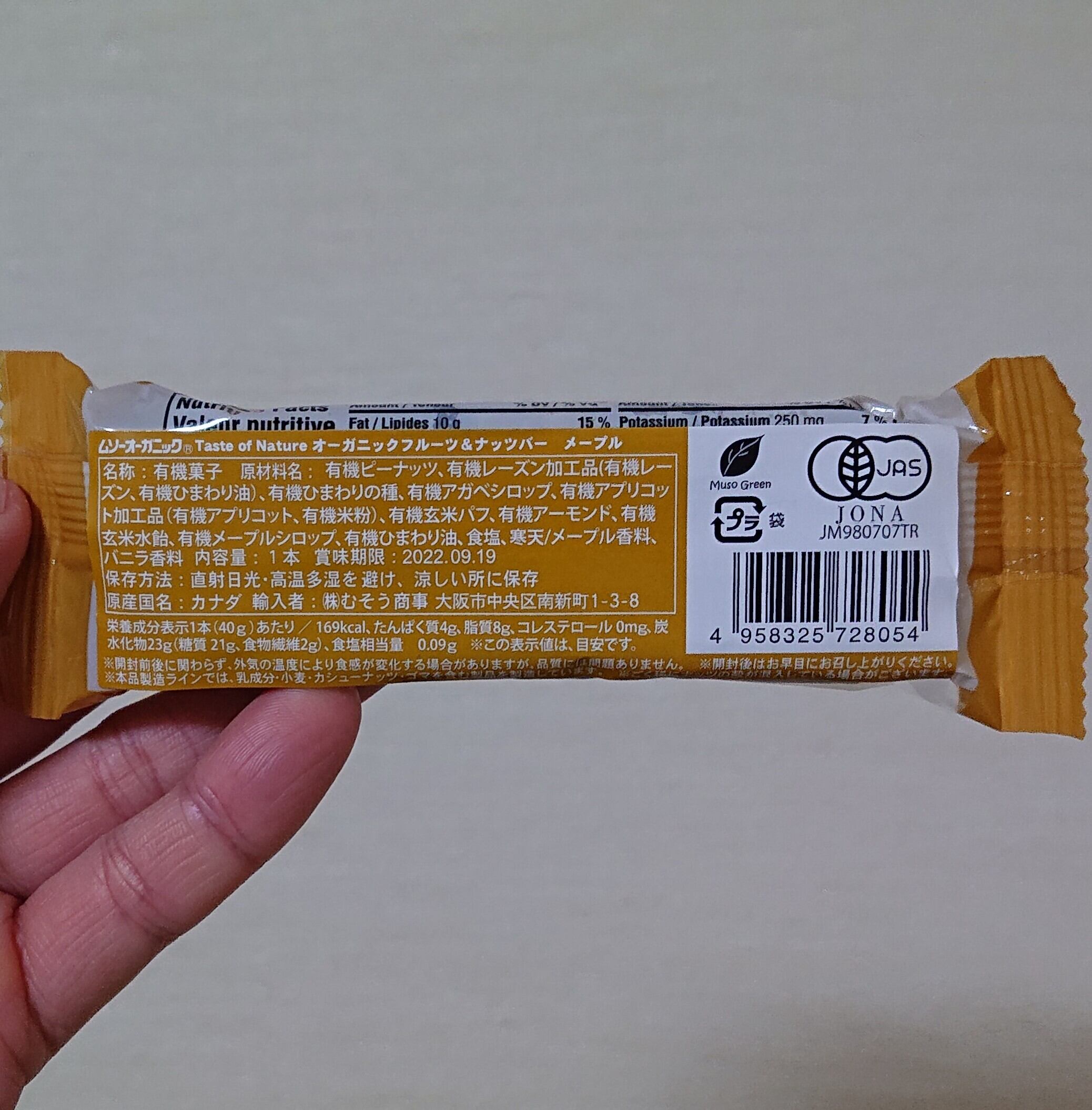 有機ピーナツ、有機レーズン加工品(有機レーズン、有機ひまわり油)、有機アガベシロップ、有機アプリコット加工品(有機アプリコット、有機米粉)、有機玄米パフ、有機胡麻、有機ひまわりの種、有機玄米水飴、有機アーモンド、有機メープルシロップ、有機ひまわり油、食塩、寒天/メープル香料、バニラ香料